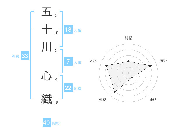 五十川 心織さんの総格は40画の2点!