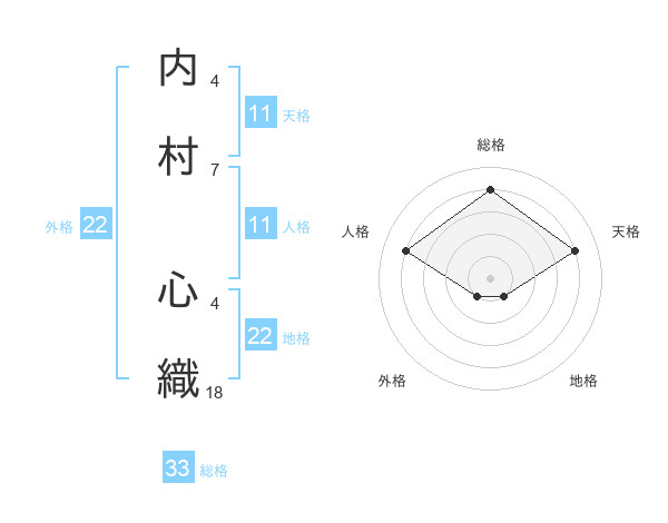 内村 心織さんの総格は33画の4点!