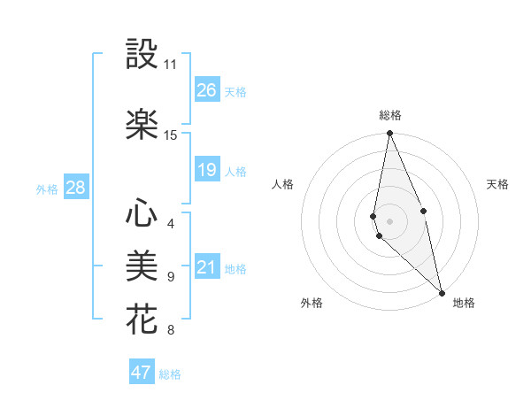 設楽 心美花さんを姓名の画数から五運を鑑定