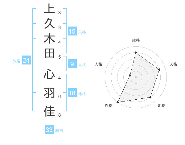 上久木田 心羽佳さんを姓名の画数から五運を鑑定