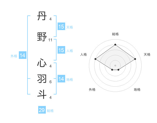 丹野 心羽斗さんを姓名の画数から五運を鑑定