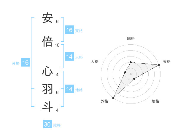 安倍 心羽斗さんの外格は16画の5点!