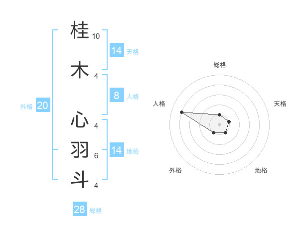桂木 心羽斗さんの総格は28画の1点!