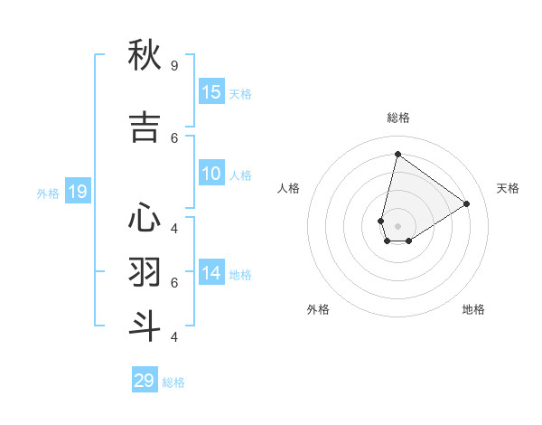 秋吉 心羽斗さんを姓名の画数から五運を鑑定
