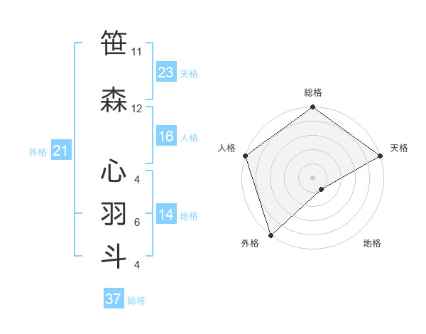 笹森 心羽斗さんを姓名の画数から五運を鑑定