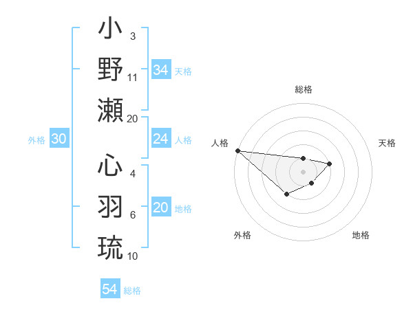 小野瀬 心羽琉さんを姓名の画数から五運を鑑定