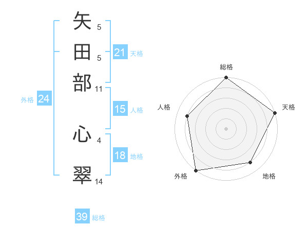 矢田部 心翠さんの天格は21画の5点