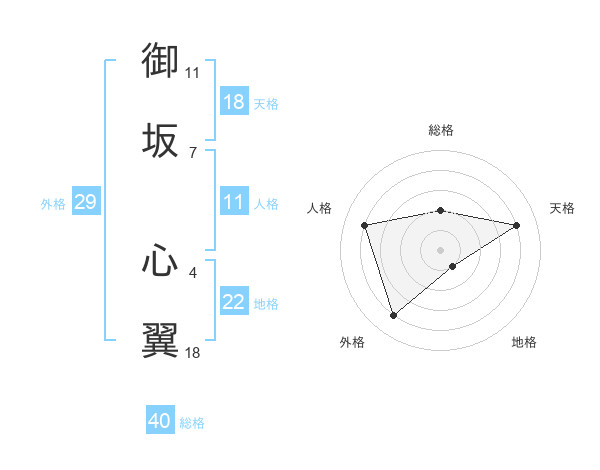 御坂 心翼さんを姓名の画数から五運を鑑定