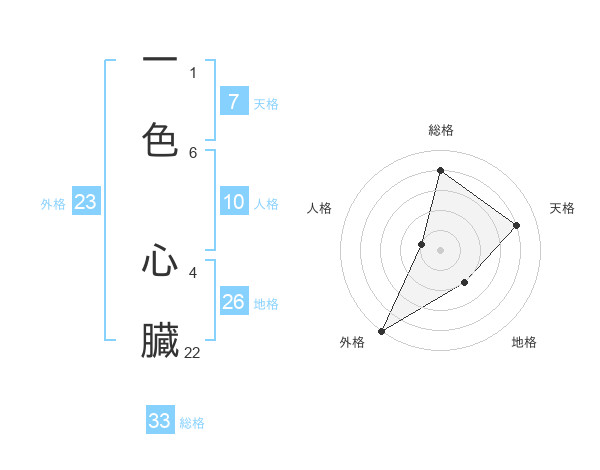 一色 心臓さんの外格は23画の5点!