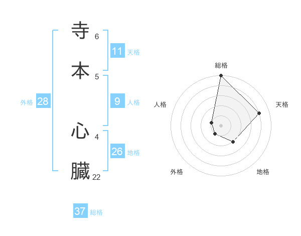 寺本 心臓さんの総格は37画の5点!