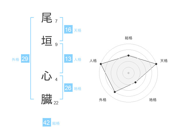 尾垣 心臓さんを姓名の画数から五運を鑑定