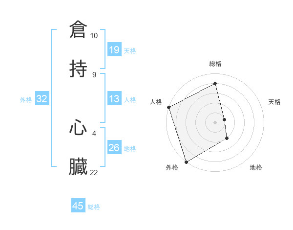 倉持 心臓さんを姓名の画数から五運を鑑定