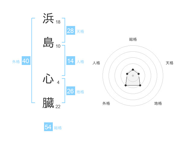 浜島 心臓さんを姓名の画数から五運を鑑定