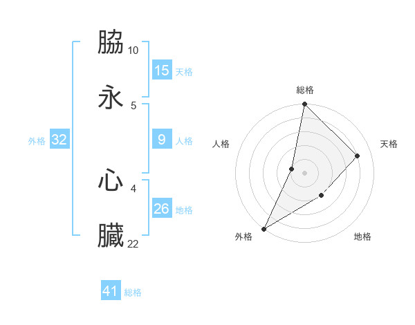 脇永 心臓さんの外格は32画の5点!