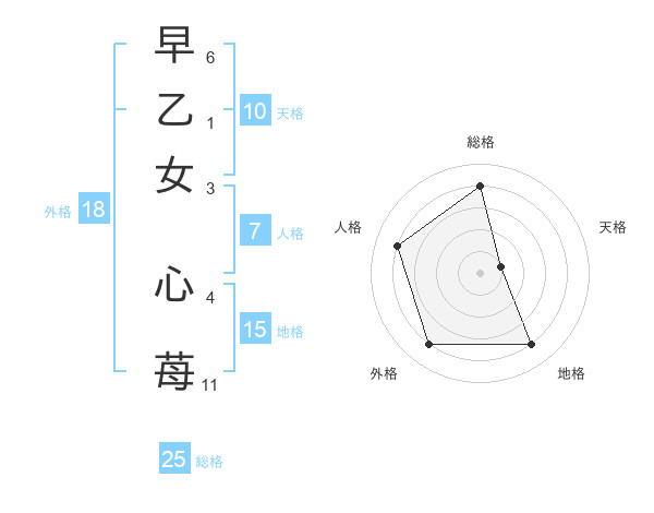 早乙女 心苺さんの総格は25画の4点!
