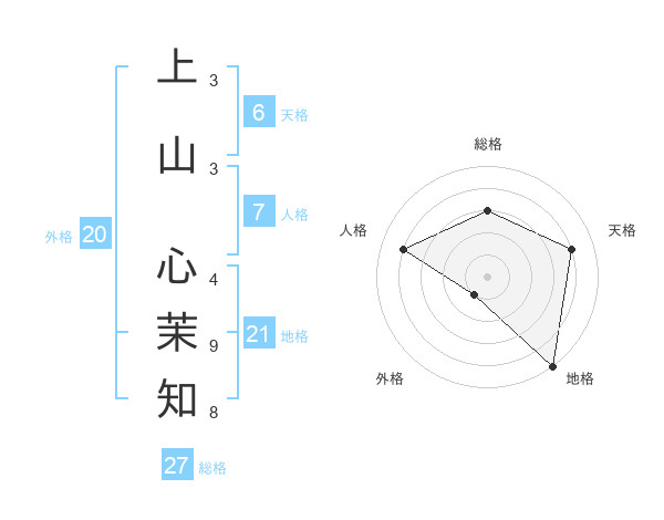 上山 心茉知さんを姓名の画数から五運を鑑定