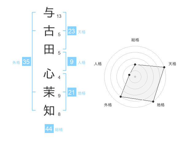与古田 心茉知さんを姓名の画数から五運を鑑定