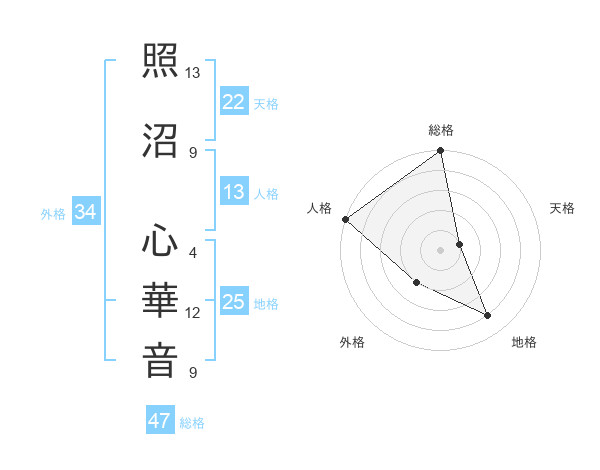 照沼 心華音さんを姓名の画数から五運を鑑定