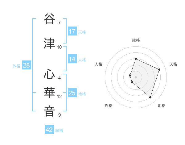 谷津 心華音さんを姓名の画数から五運を鑑定