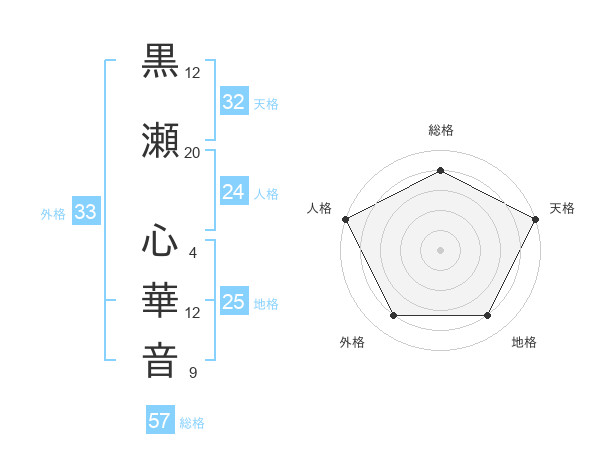 黒瀬 心華音さんを姓名の画数から五運を鑑定