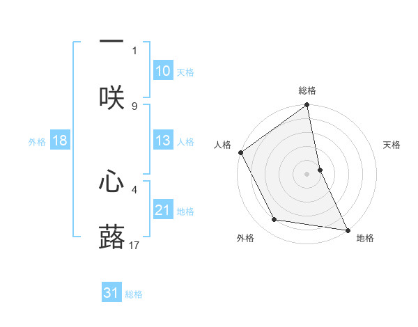 一咲 心蕗さんの総格は31画の5点!