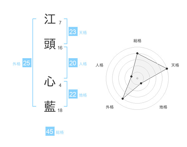 江頭 心藍さんを姓名の画数から五運を鑑定