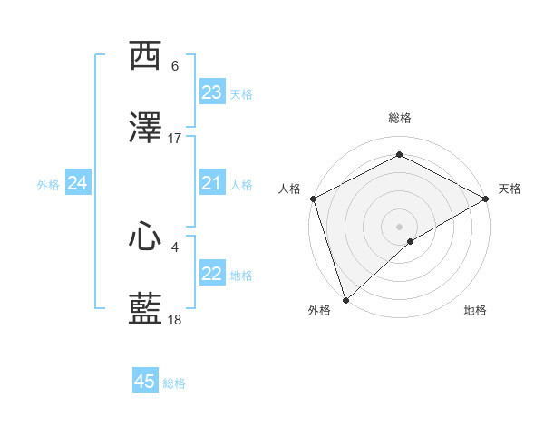 西澤 心藍さんを姓名の画数から五運を鑑定