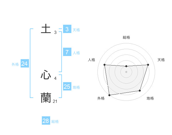 土 心蘭さんの外格は24画の5点!