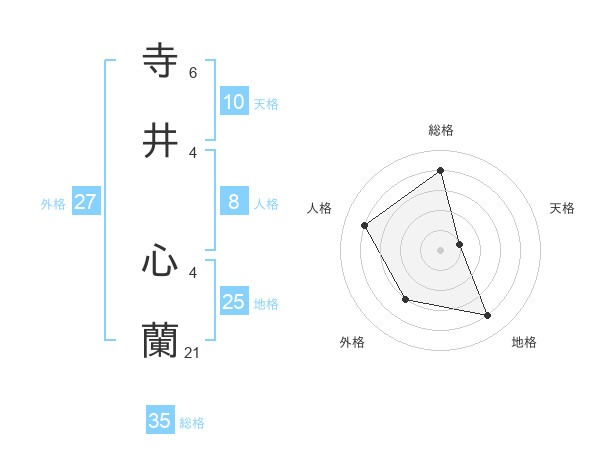 寺井 心蘭さんを姓名の画数から五運を鑑定