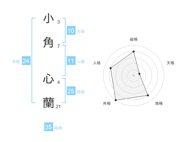小角 心蘭さんを姓名の画数から五運を鑑定
