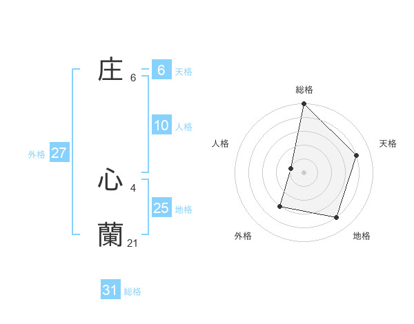 庄 心蘭さんの総格は31画の5点!