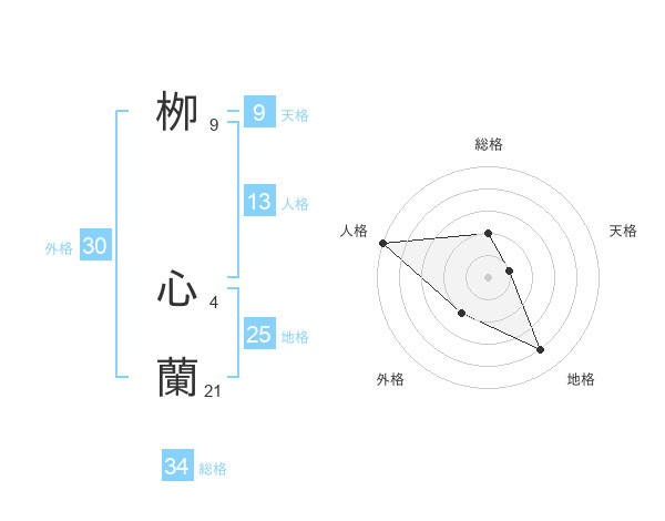 栁 心蘭さんの外格は30画の2点!