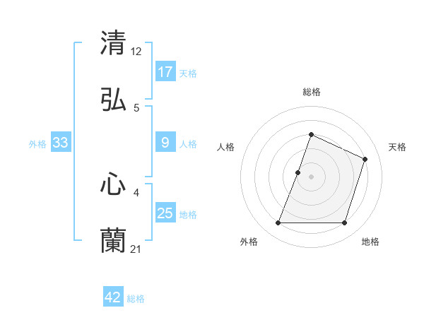 清弘 心蘭さんの天格は17画の4点!