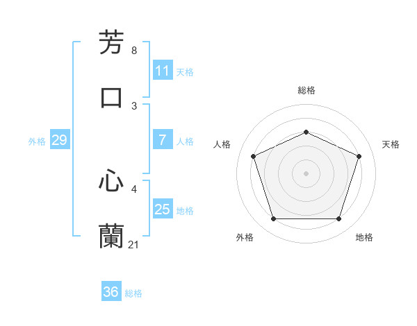 芳口 心蘭さんの天格は11画の4点!