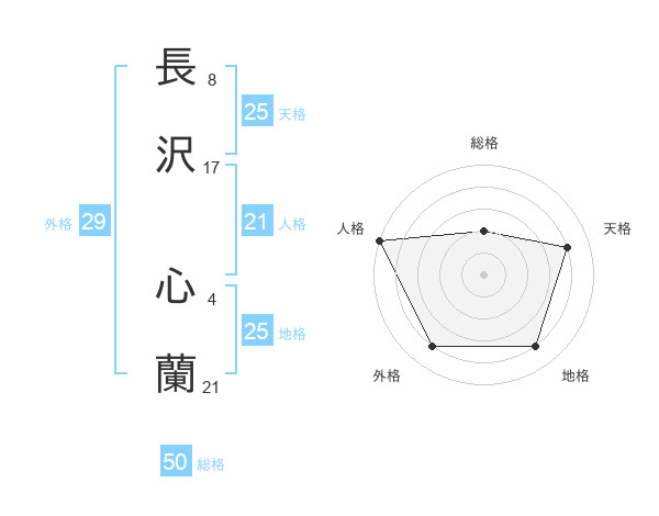 長沢 心蘭さんを姓名の画数から五運を鑑定