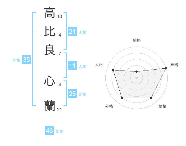 高比良 心蘭さんの天格は21画の5点!