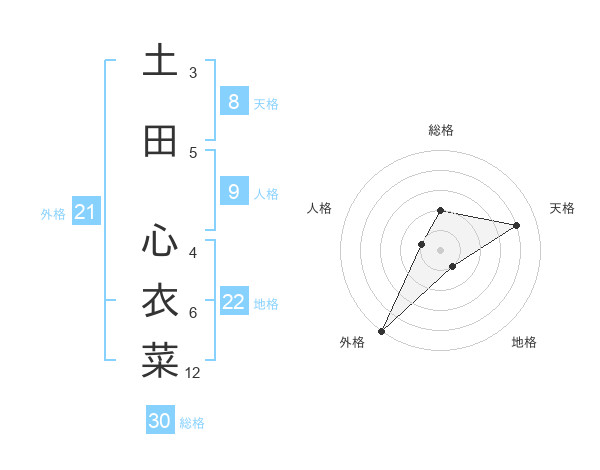 土田 心衣菜さんを姓名の画数から五運を鑑定