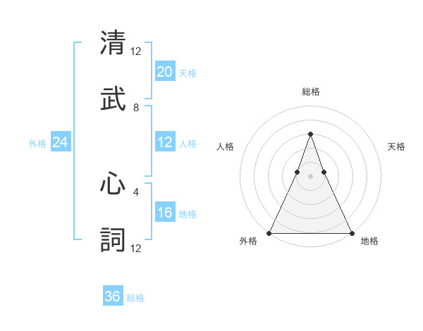 清武 心詞さんの総格は36画の3点
