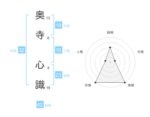 奥寺 心識さんの外格は32画の5点!