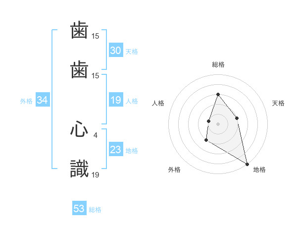 歯歯 心識さんの総格は53画の3点!