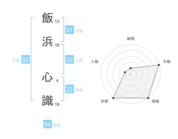 飯浜 心識さんの外格は32画の5点!