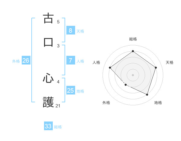 古口 心護さんの地格は25画の4点!