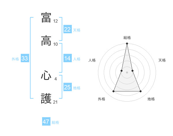 富高 心護さんの総格は47画の5点!