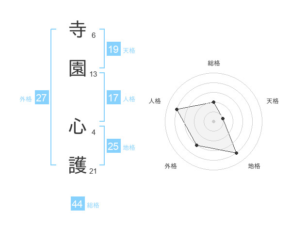 寺園 心護さんを姓名の画数から五運を鑑定
