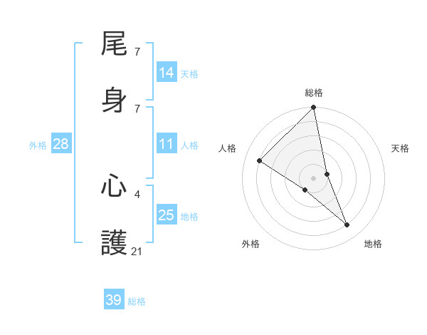 尾身 心護さんを姓名の画数から五運を鑑定