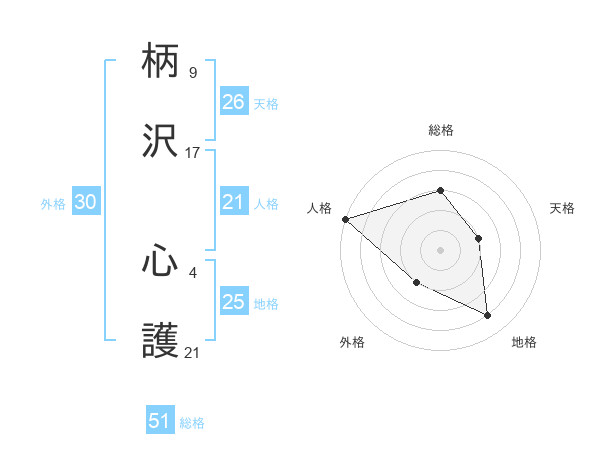 柄沢 心護さんの天格は26画の2点!