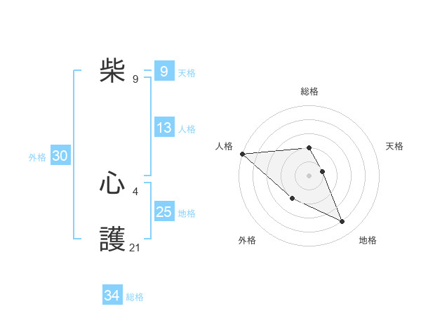 柴 心護さんの総格は34画の2点!