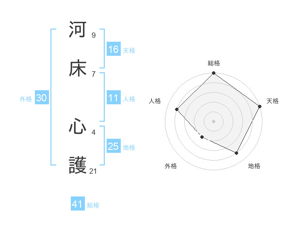 河床 心護さんの総格は41画の5点!