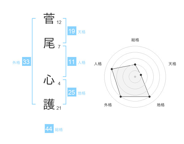 菅尾 心護さんを姓名の画数から五運を鑑定
