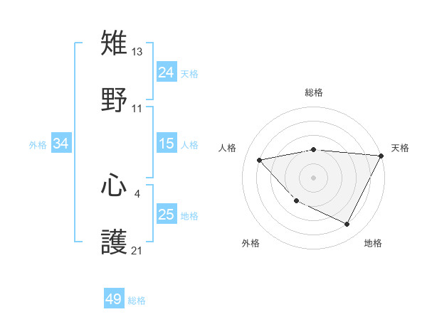 雉野 心護さんの天格は24画の5点!